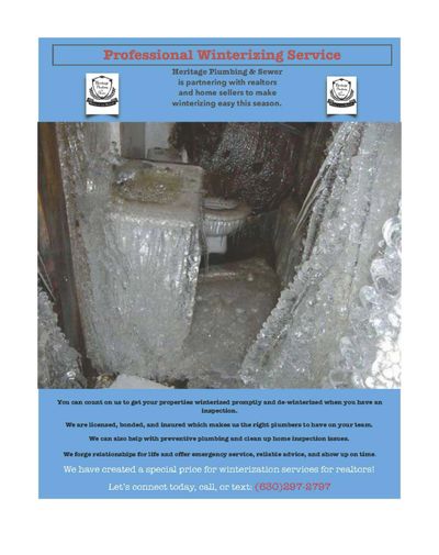 Heritage Plumbing is partnering with realtors and home sellers to make winterizing easy this season.